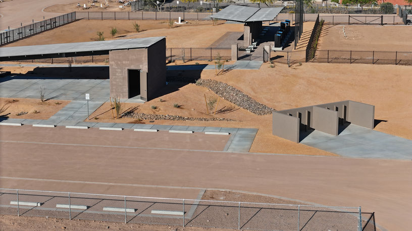 The project at the Lehi Cemetery is designed to honor the Maricopa (Xalychidom Piipaash) tribe by providing new gravesites for Veterans. The memorial site will feature columns dedicated to each branch of the military, along with a single column representing the Community. These memorial columns will be spaced apart along a walkway, connected by a decorative promenade. A shaded canopy with benches will provide a peaceful refuge for visitors to reflect and view the columns.
