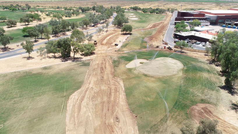 This project involved the construction of an emergency stormwater drainage ditch at Talking Stick Golf Club for the Salt River Pima-Maricopa Indian Community, aimed at diverting rainwater away from the Talking Stick Resort to prevent future flooding incidents. The scope of work included several acres of tree removal and landscape demolition, grading swales through fairways, and the careful locating and realigning of existing utilities. It also required the relocation of irrigation and gas lines, the construction of hundreds of linear feet of cast-in-place (CIP) walls, as well as new landscaping and irrigation systems. The final phase of the project involved the installation of golf course sod. The primary objective was to connect the northern retention area of the golf course to the southern retention basin, with an ultimate outfall tied into the existing storm drain system, ensuring efficient stormwater management and flood prevention.